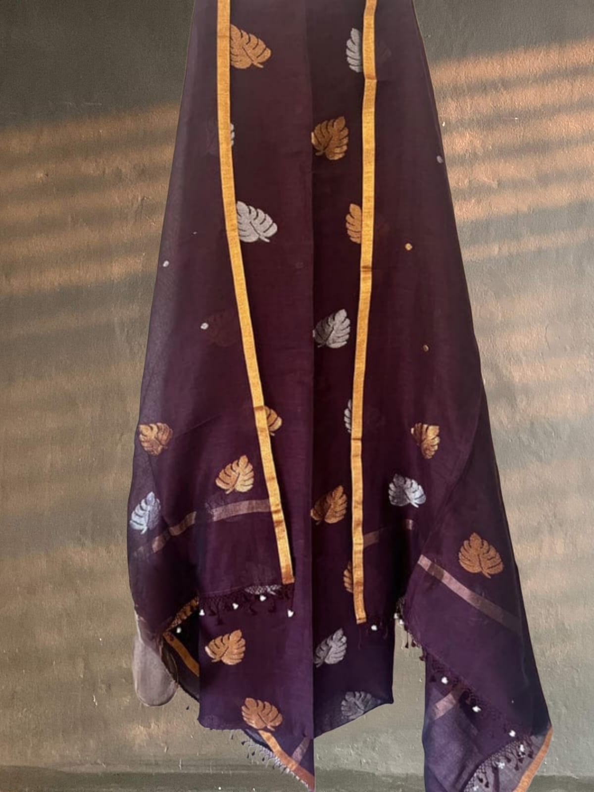 Elevate your ethnic wardrobe with the Silver & Golden Leaf Weaved Pure Linen by Linen (84 Count). Expertly handwoven, this premium linen features intricate silver and golden leaf motifs, reflecting a perfect blend of traditional craftsmanship and contemporary style. Lightweight yet durable, it offers comfort without compromising elegance. Ideal for festive occasions, celebrations, and sophisticated everyday wear. Pair it with embroidered dupattas or silk accessories to enhance its luxurious appeal.