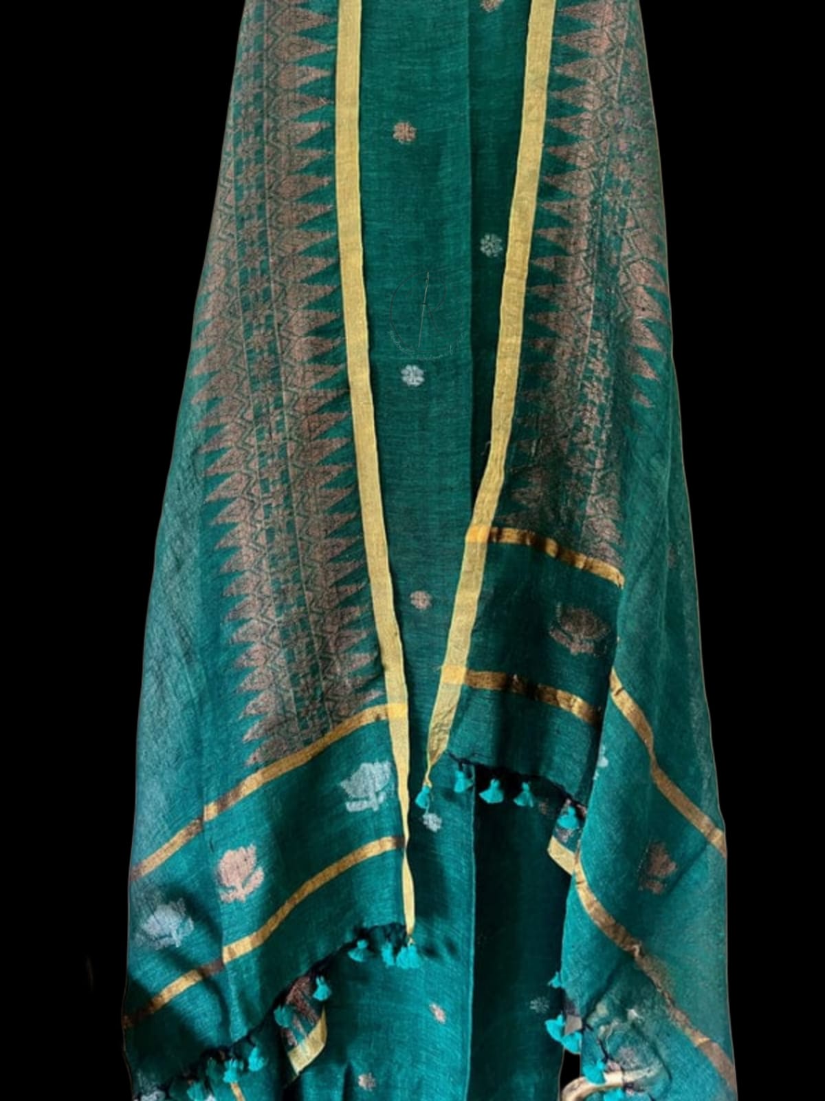 Discover elegance with our Intricate Copper Zari Weaved Linen Jamdani Suit. Crafted in 84-count pure linen by linen, this handwoven masterpiece blends traditional Jamdani weaving with contemporary copper zari accentsβ€”perfect for festive and wedding occasions.