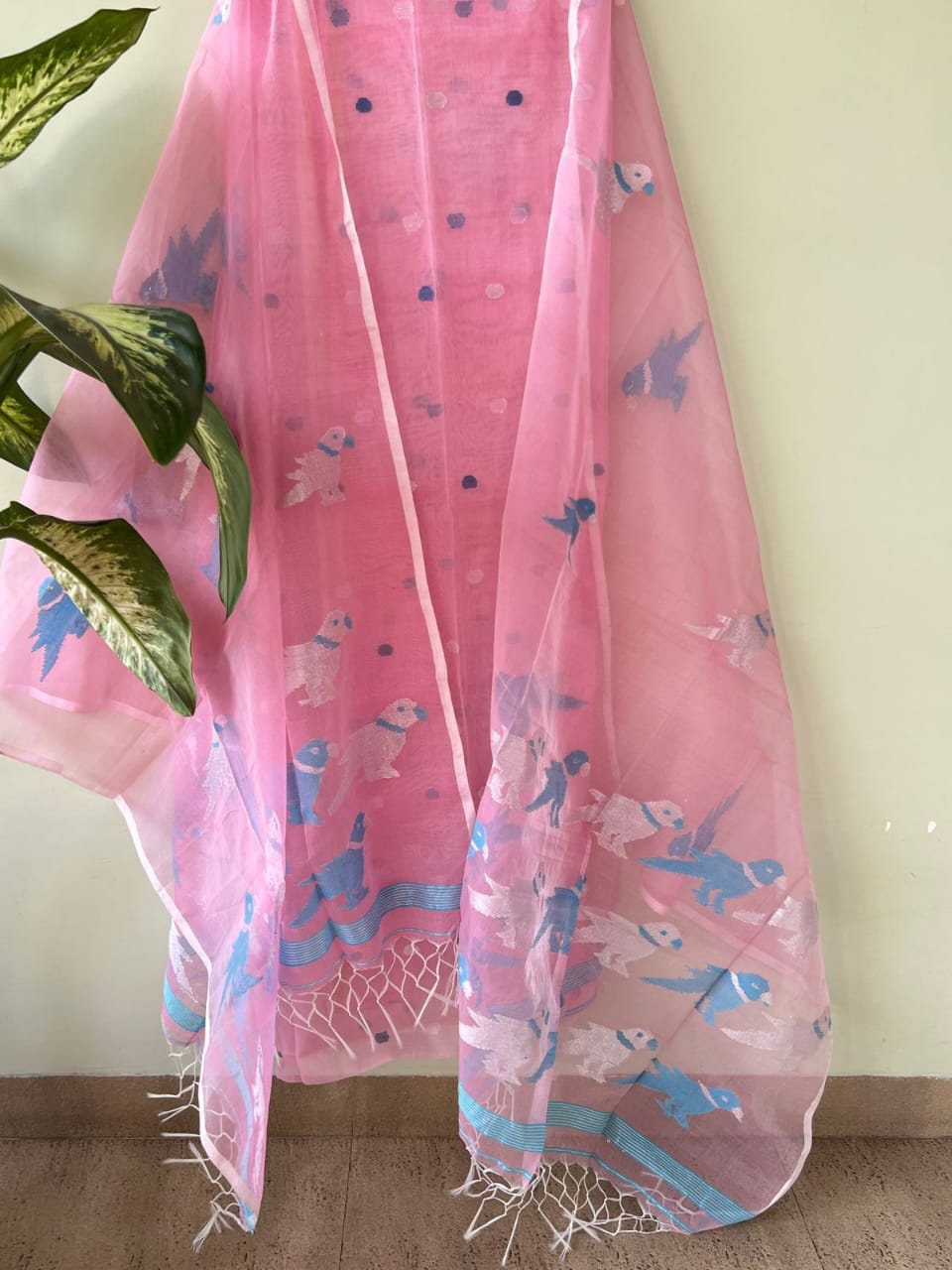 Muslin Bird Handwoven Suit Set with Dupatta