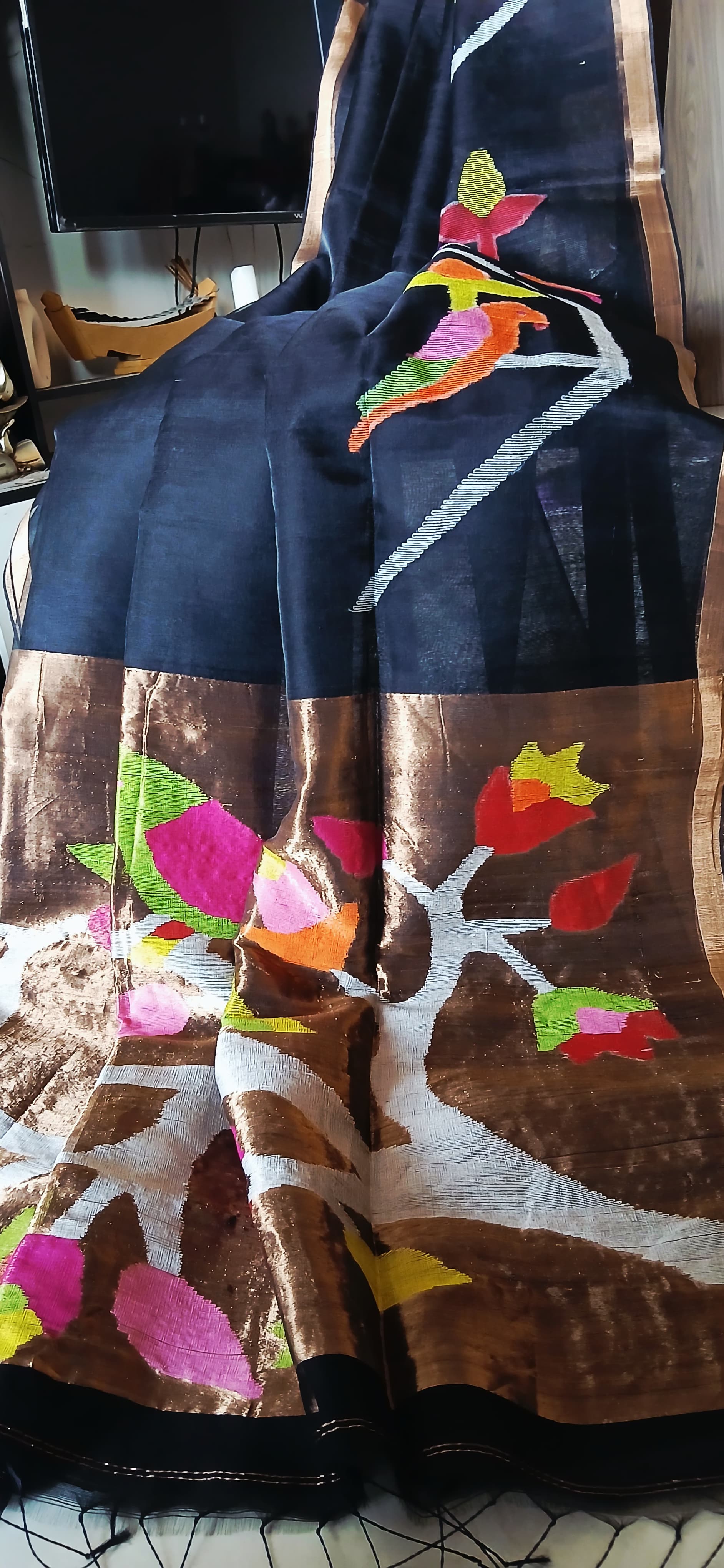 Pure Muslin- Hand Woven bird motif saree✨