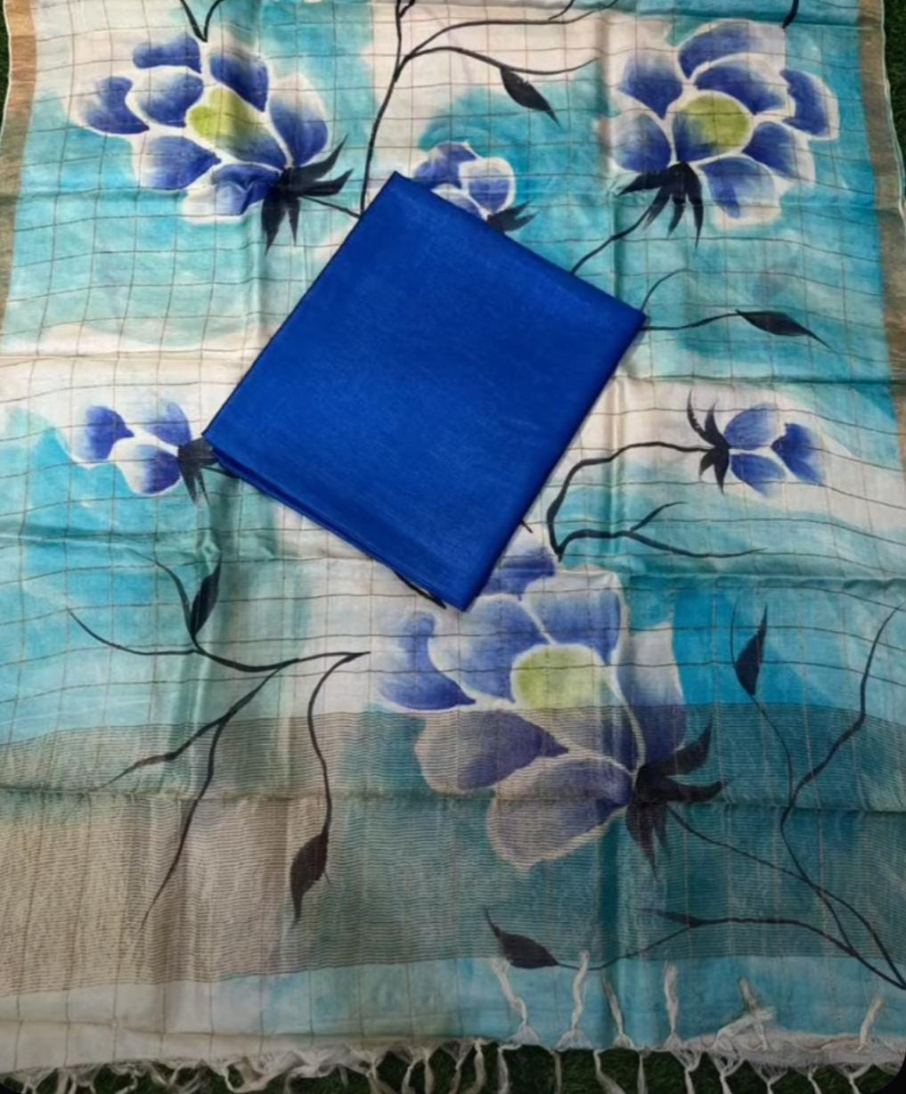 Elevate your ethnic wardrobe with the Sarshi Zari - Checkered Hand-Painted Dupatta with Solid Colour Top, a perfect blend of traditional artistry and contemporary style. The dupatta features elegant zari checkered detailing enhanced with intricate hand-painted motifs, reflecting skilled craftsmanship and rich cultural heritage.
